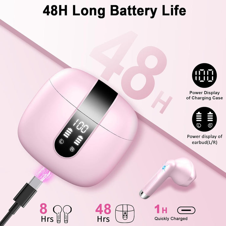 - Mini LED Ladeetui und 48 Stunden Akkulaufzeit: Bluetooth kopfhörer in ear ist mit einer intelligenten digitalen LED-Anzeige ausgestattet, die die verbleibende Leistung im digitalen Format genau anzeigen kann. Einmal Typ-C-Schnellladung aufgeladen,