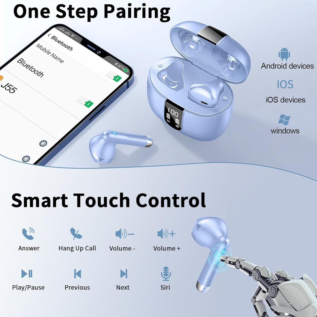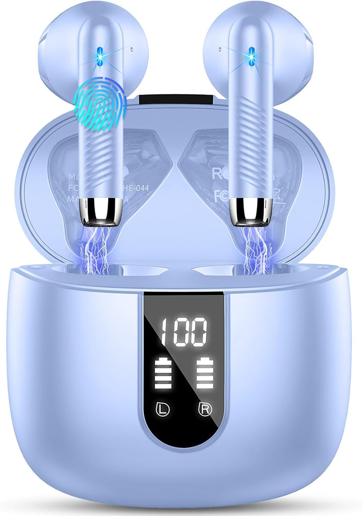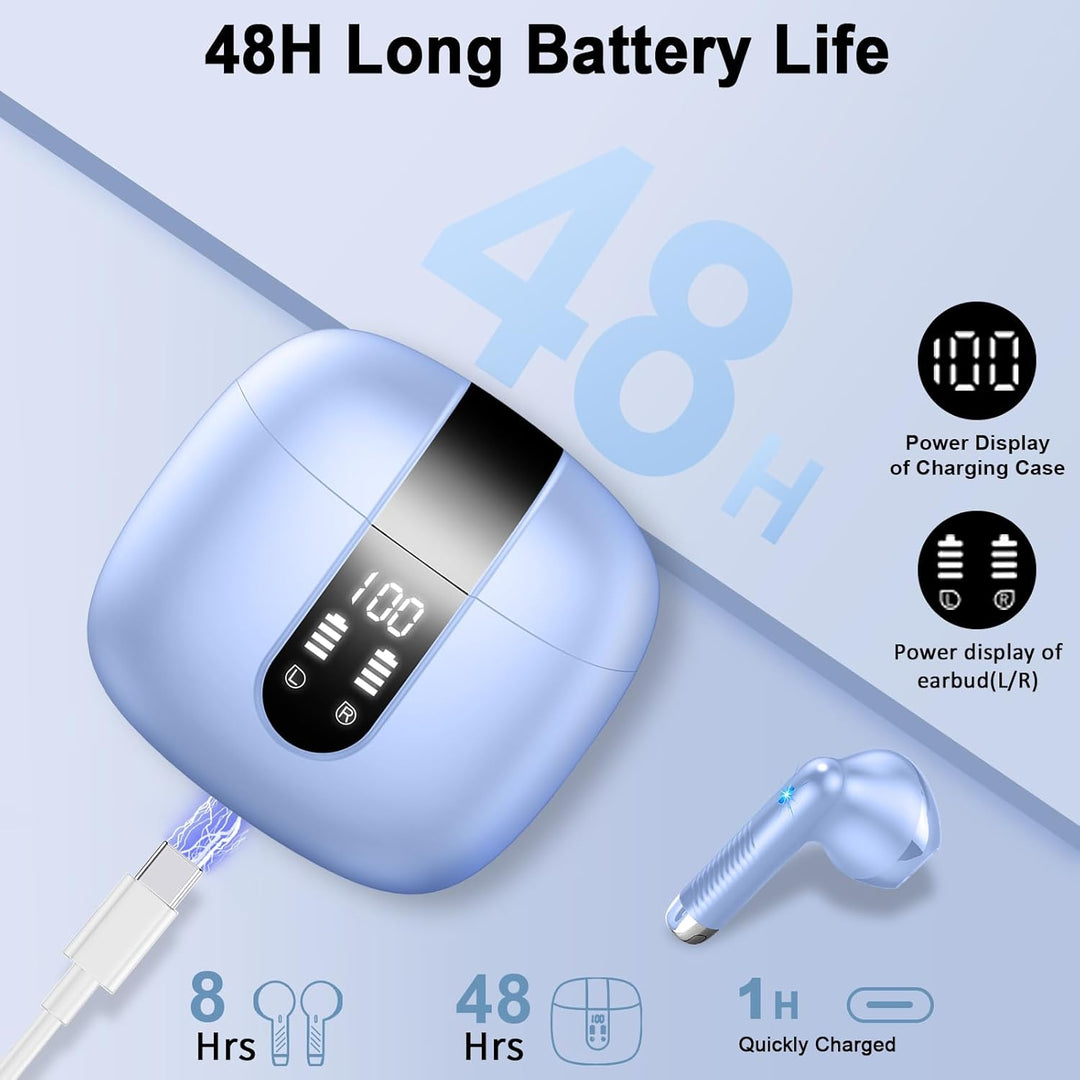 - Mini LED Ladeetui und 48 Stunden Akkulaufzeit: Bluetooth kopfhörer in ear ist mit einer intelligenten digitalen LED-Anzeige ausgestattet, die die verbleibende Leistung im digitalen Format genau anzeigen kann. Einmal Typ-C-Schnellladung aufgeladen,