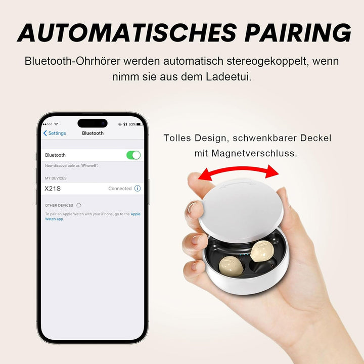 - 🔋【Lange Akkulaufzeit & Tolles Geschenk】 Die Schlafohrhörer können mit einer einzigen vollen Ladung 6-7 Stunden lang Songs hören und das tragbare Ladecase bietet zusätzliche 4-5 Mal, um diese unsichtbaren Ohrhörer mit Strom zu versorgen. Es