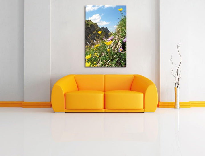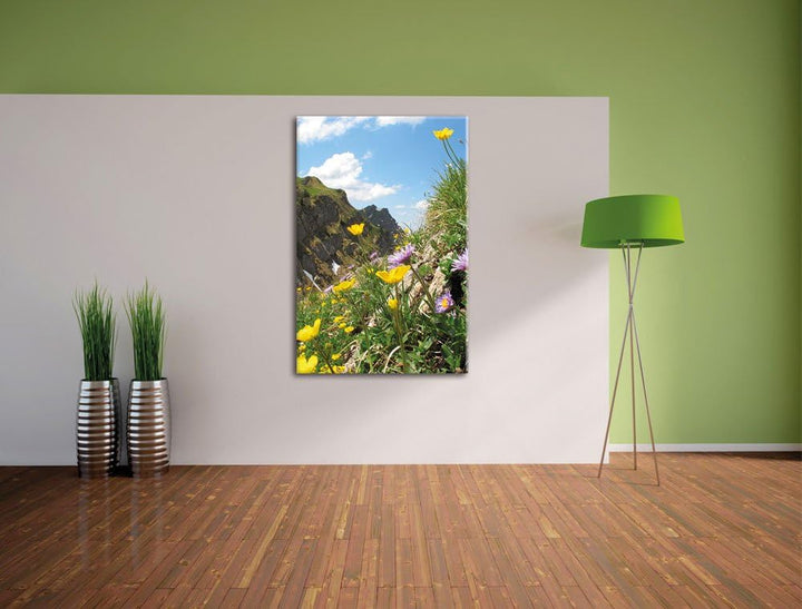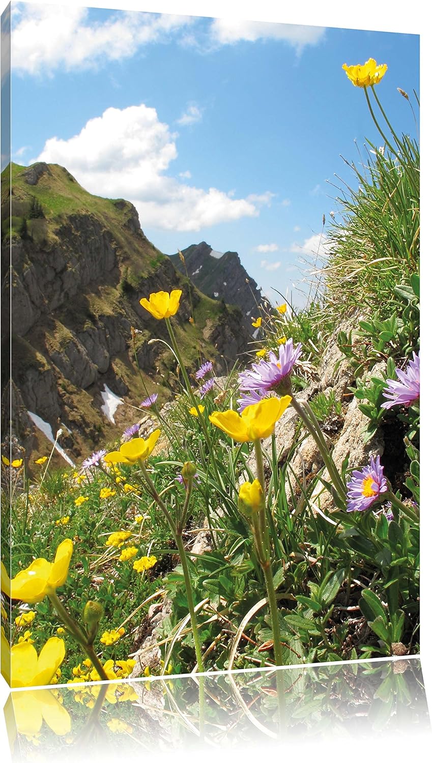Blumenwiese im Frühling, Format: 100x70 auf Leinwand, XXL riesige Bilder fertig gerahmt mit Keilrahm
