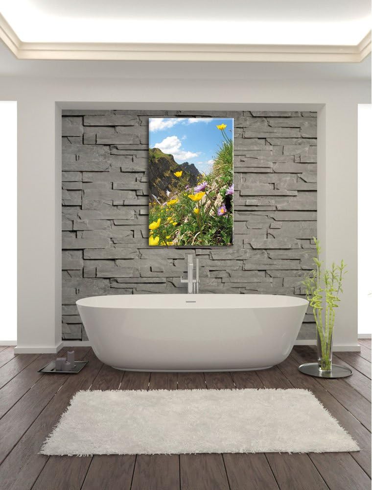 • Für einen nahtlosen Übergang an den Kanten wird das Bild über diese hinausgedruckt. Weisse Fläche wird somit ideal überdeckt und das Bild hat einen schönen Übergang zur Wand. Alle Bilder werden mit hochwertigen, ökologischen Pigmenttinten