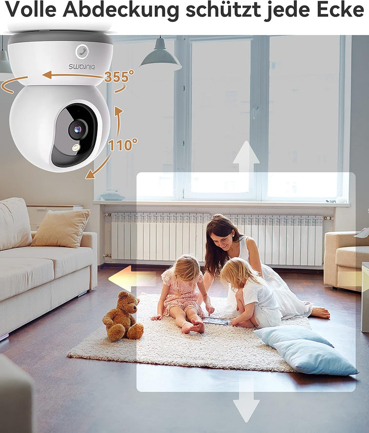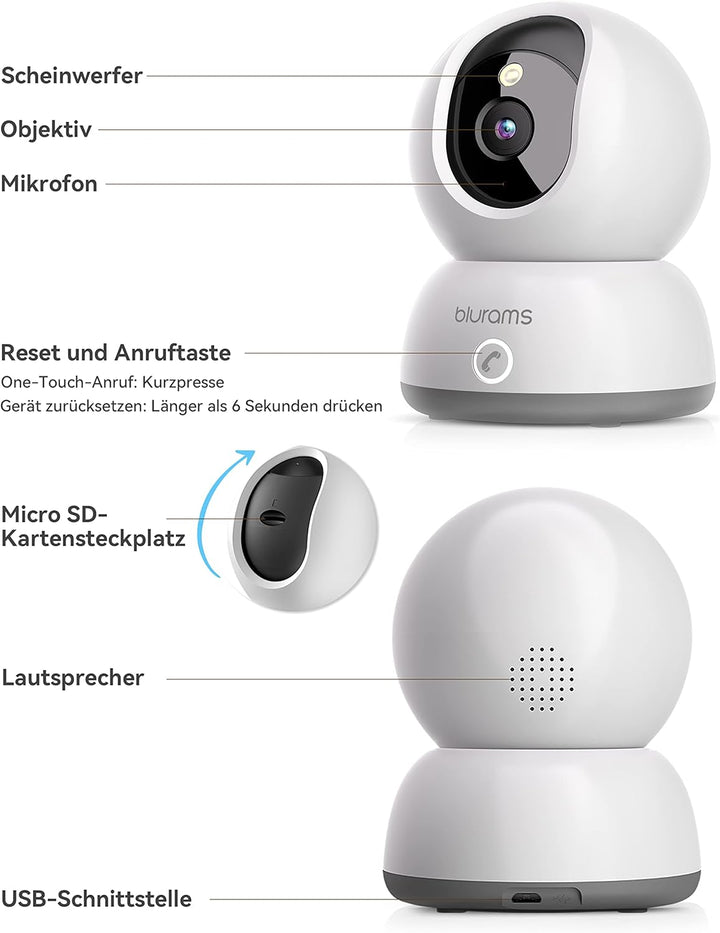 - 👍【360-Grad-Rundumschutz】 Die wlan kamera indoor bietet einen 360-Grad-Rundumschutz, den Sie ganz einfach über die blurams-Telefon-App oder den Webclient steuern können.Videoüberwachung mit einer Echtzeit-Live-Streaming-Funktion können Sie Ihre