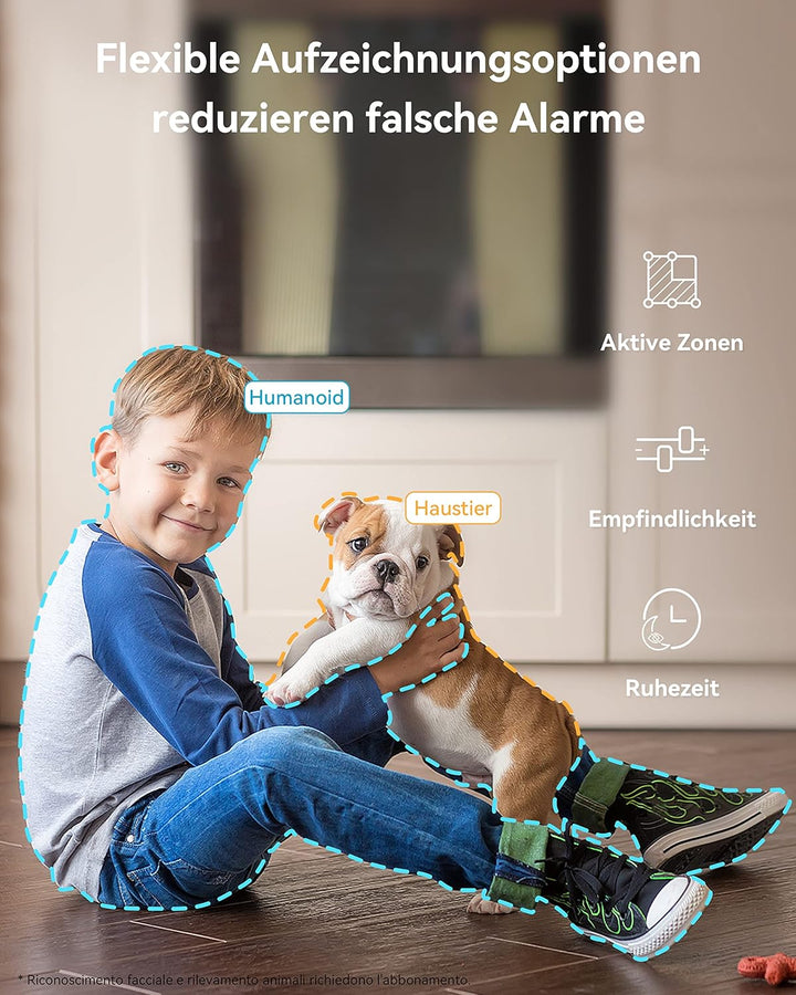 - 👍【Weniger falsche Alarme mit anpassbaren Optionen】Diese intelligente WLAN überwachungskamera ermöglicht es Ihnen, die Sound-/Bewegungs-/Mensch-/Haustiererkennung in den Einstellungen anzupassen. Dazu gehören die Anpassung der Empfindlichkeit,