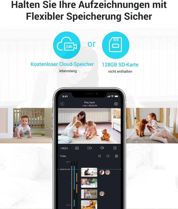 - ✅【Flexible Cloud- & Lokale Speicheroptionen】Mit 24/7 CVR ermöglicht unsere kamera innen eine kontinuierliche Aufzeichnung in der Cloud und verringert das Risiko des Verlusts von Videomaterial von einer SD-Karte. Suchen Sie schnell nach