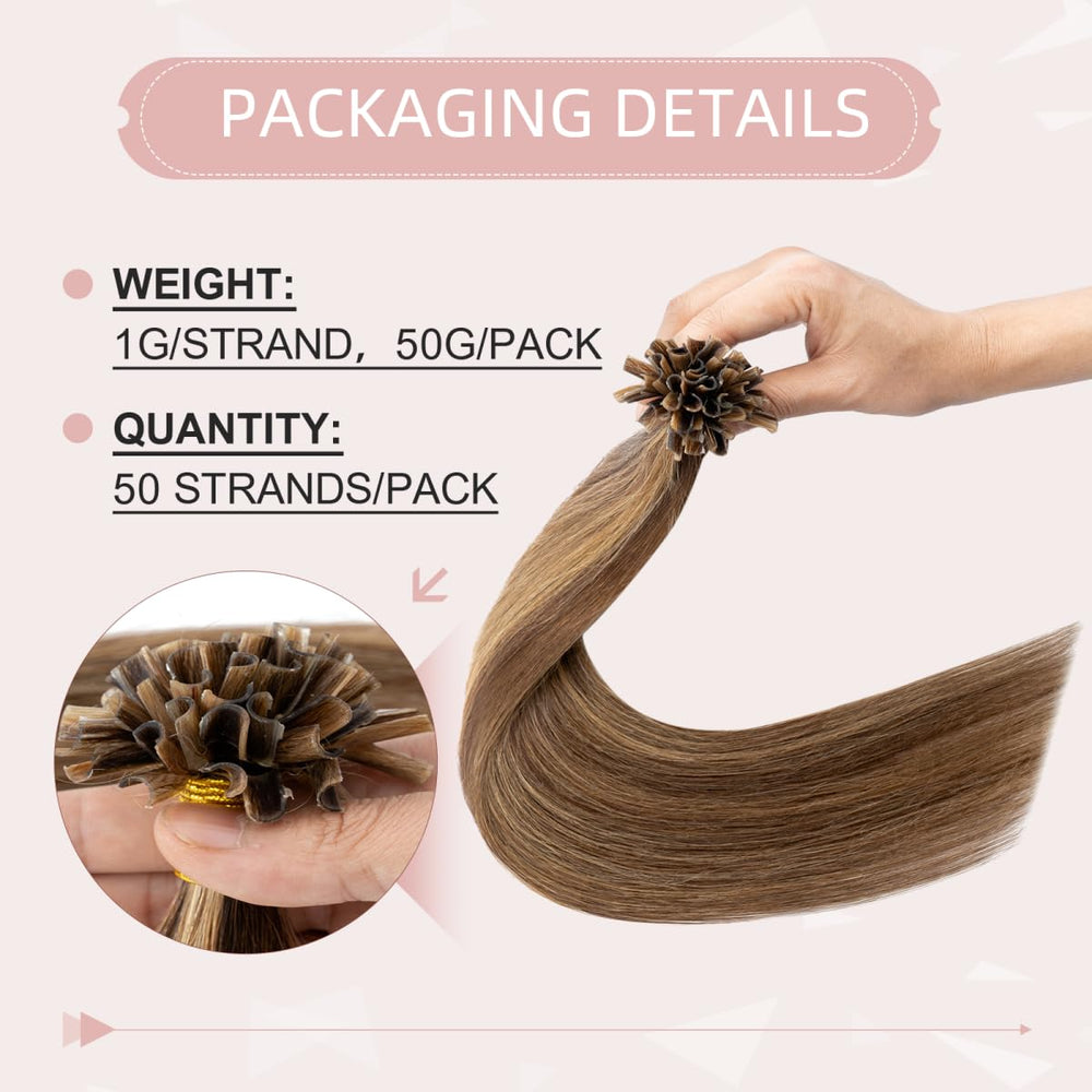 - KERATIN U TIP: Die verklebten Enden bestehen aus ausgezeichnetem italienischen Keratin-Klebe, es ist durch heisse Fusion installiert. Ein spezielles Lösungsmittel ermöglicht es Ihnen, das Keratin-Haarteil leicht zu entfernen.