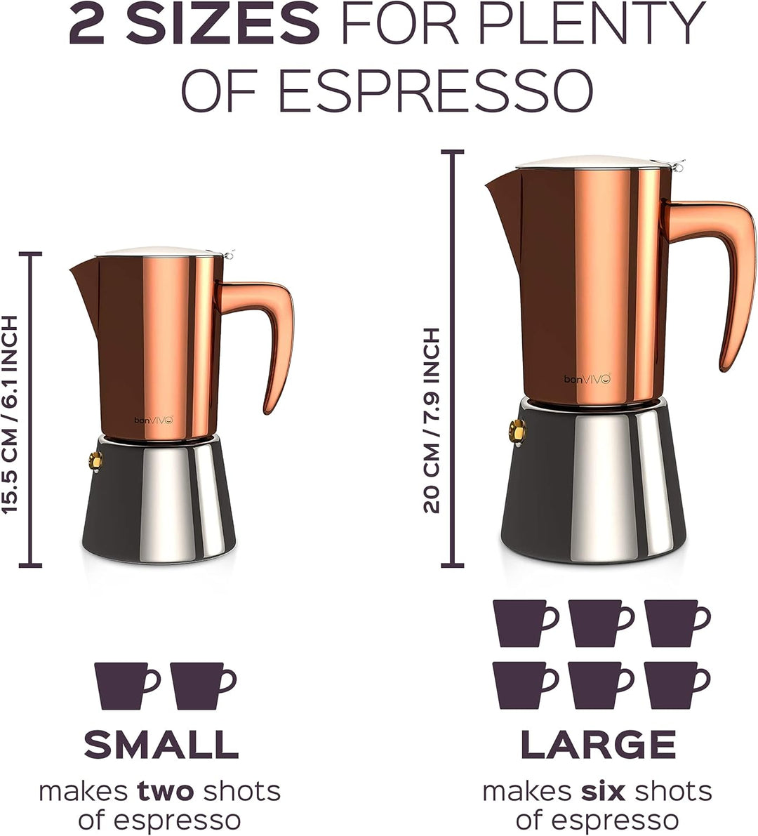 - EDLES DESIGN: Mit dem Mokkakocher aus Edelstahl im Kupfer-Chrom Look wird jeder zum Barista!
