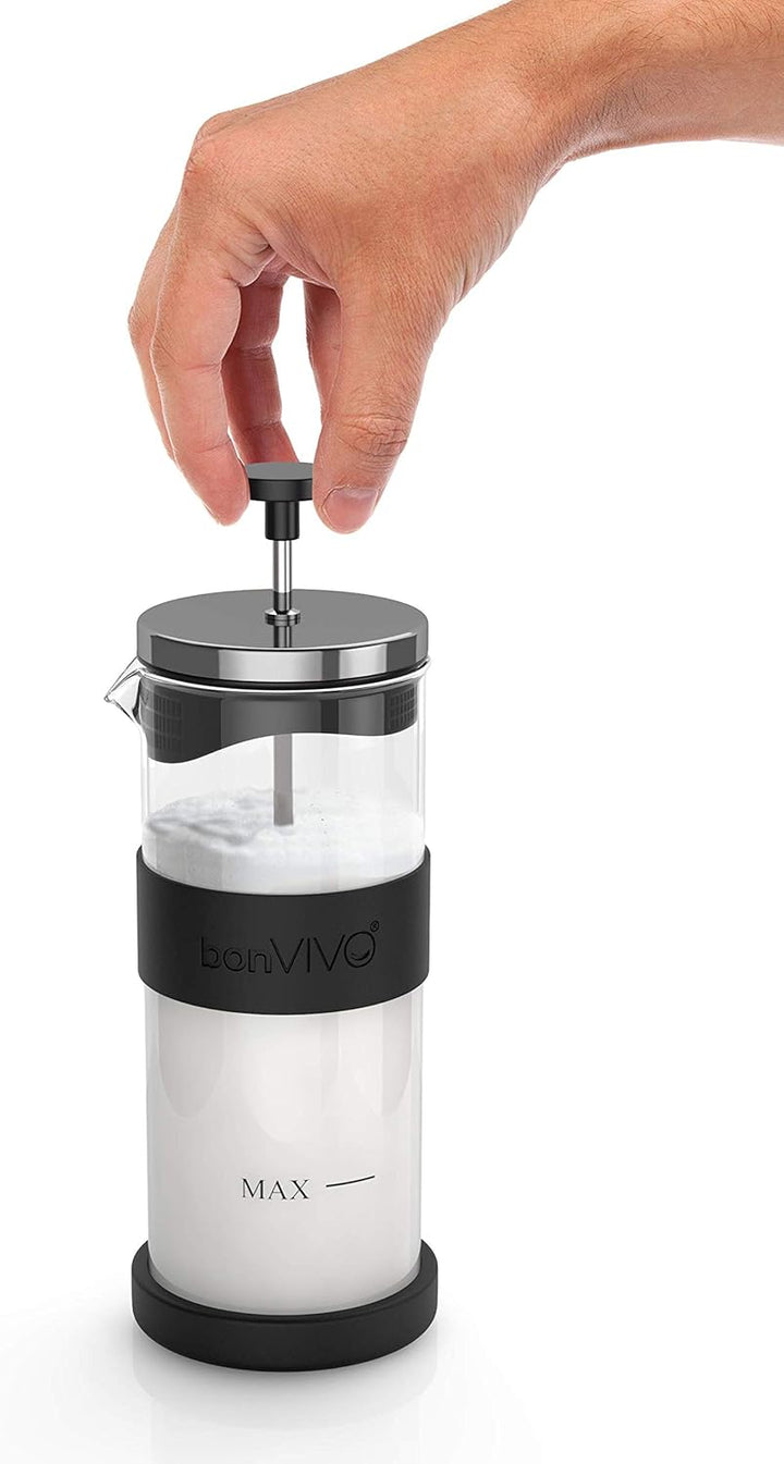 - ✔ FÜR MILCHLIEBHABER: Der Milchaufschäumer Fomo von bonVIVO ist der Traum für alle Kaffee- und Milchliebhaber. Der Hand-Milchaufschäumer ist bequem und sehr intuitiv zu bedienen. Mit der Milchschaum Maschine lässt sich problemlos der leichte