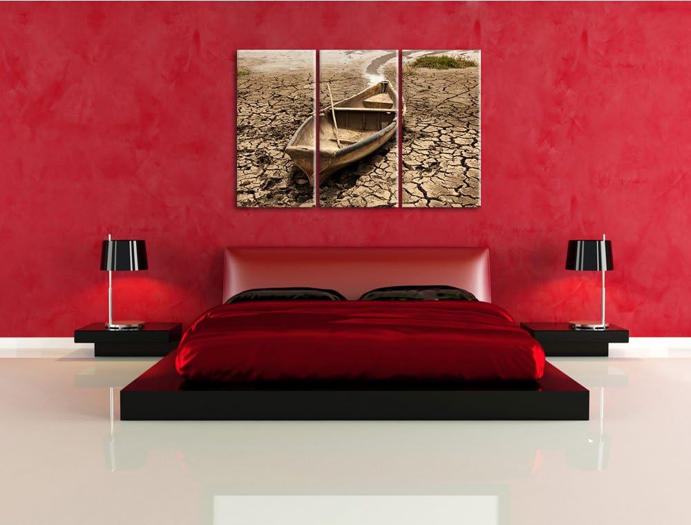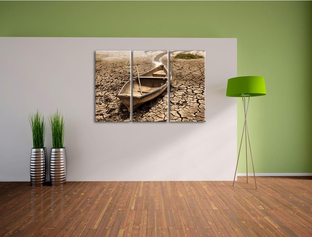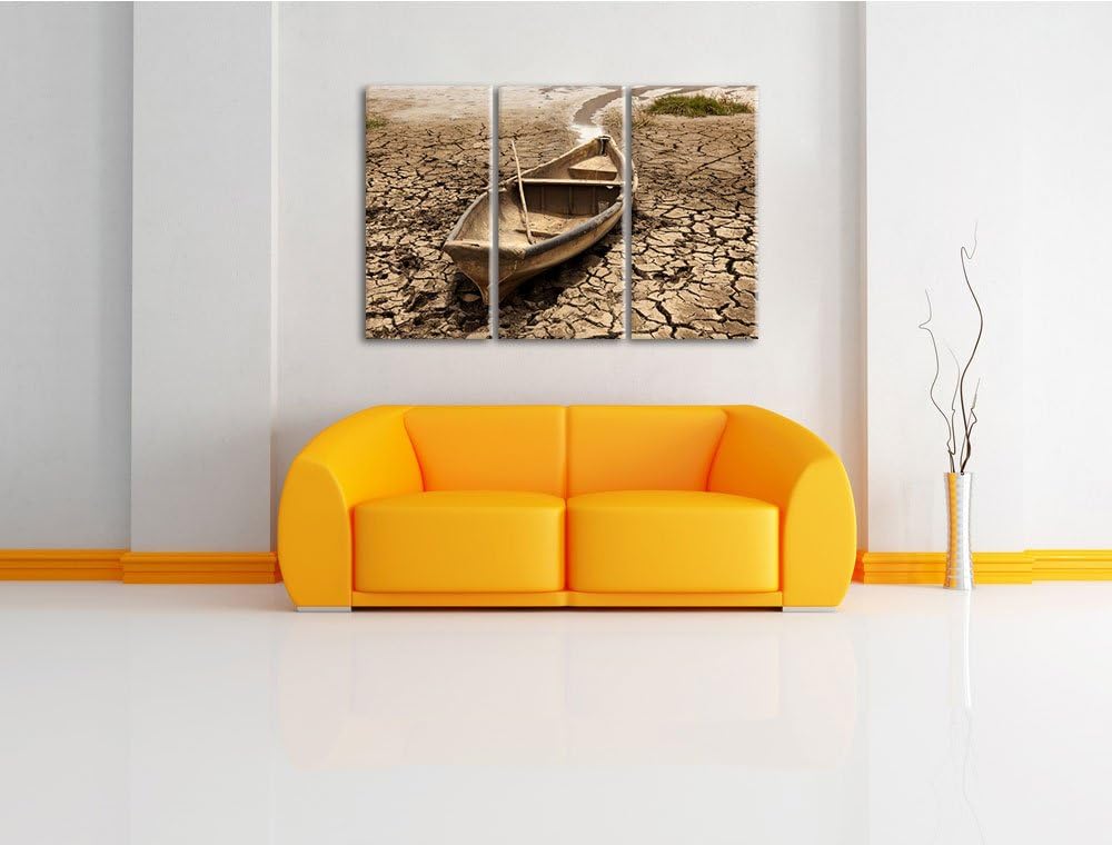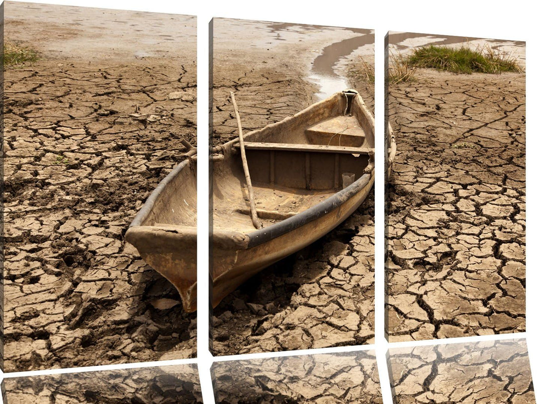 Boot in der Dürre als 3-Teiler Leinwandbild 120x80 Bild auf Leinwand, XXL riesige Bilder fertig gera