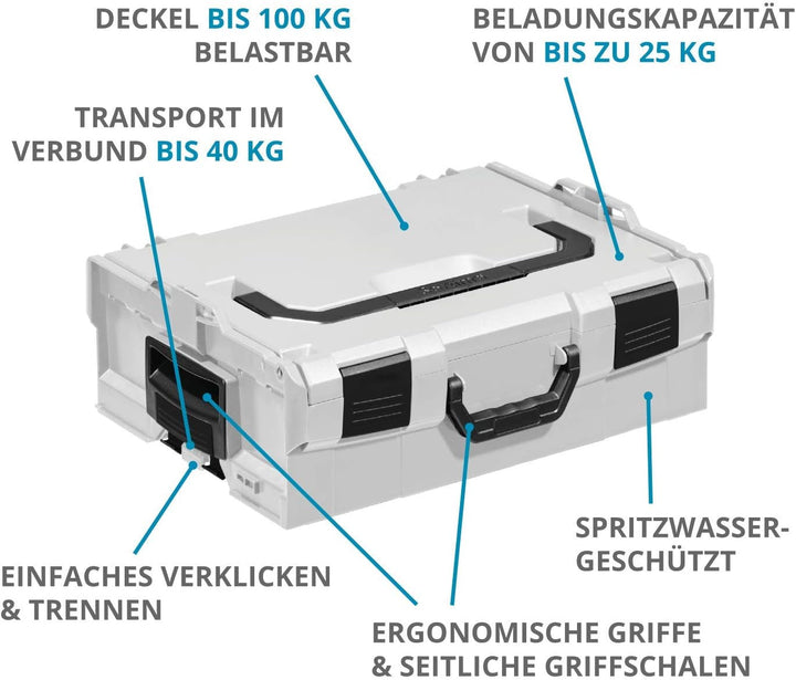 - ✅ FLEXIBEL UND KOMPATIBEL – Ein L-Boxx Set kann flexibel mit einem anderen L Boxx Werkzeug Set kombiniert und weiter ergänzt werden und ist aus schlag- und stossfesten ABS Kunststoff