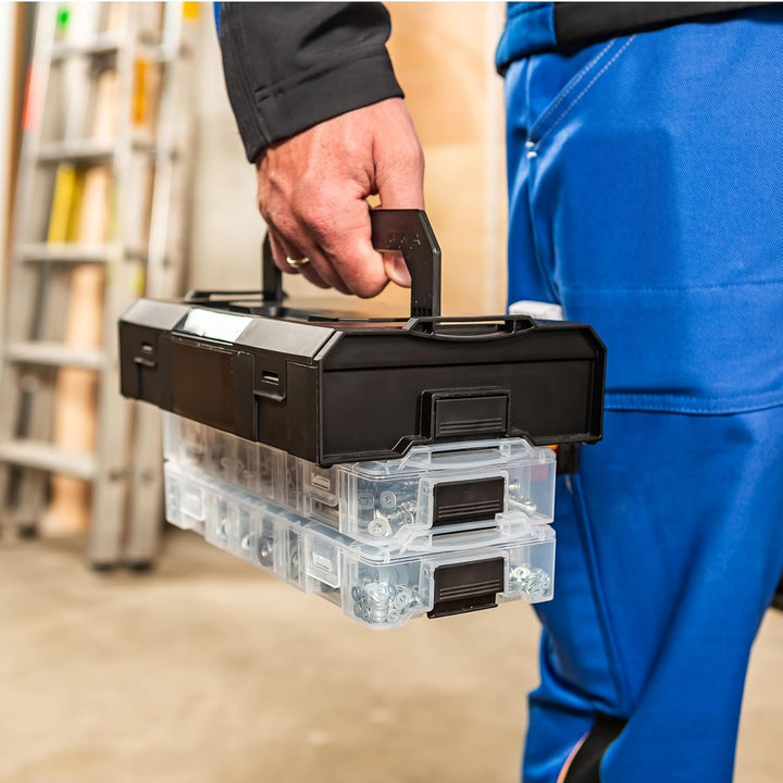 - ✅ IDEALES ORDNUNGSSYSTEM – Die L-BOX Mini ist der ideale Sortimentskasten für Kleinsortimente bis 1,5 kg wie z.B. Schrauben, Nieten und Dübel. Dank der individuell einsetzbaren Trennstege garantiert ohne vermischen