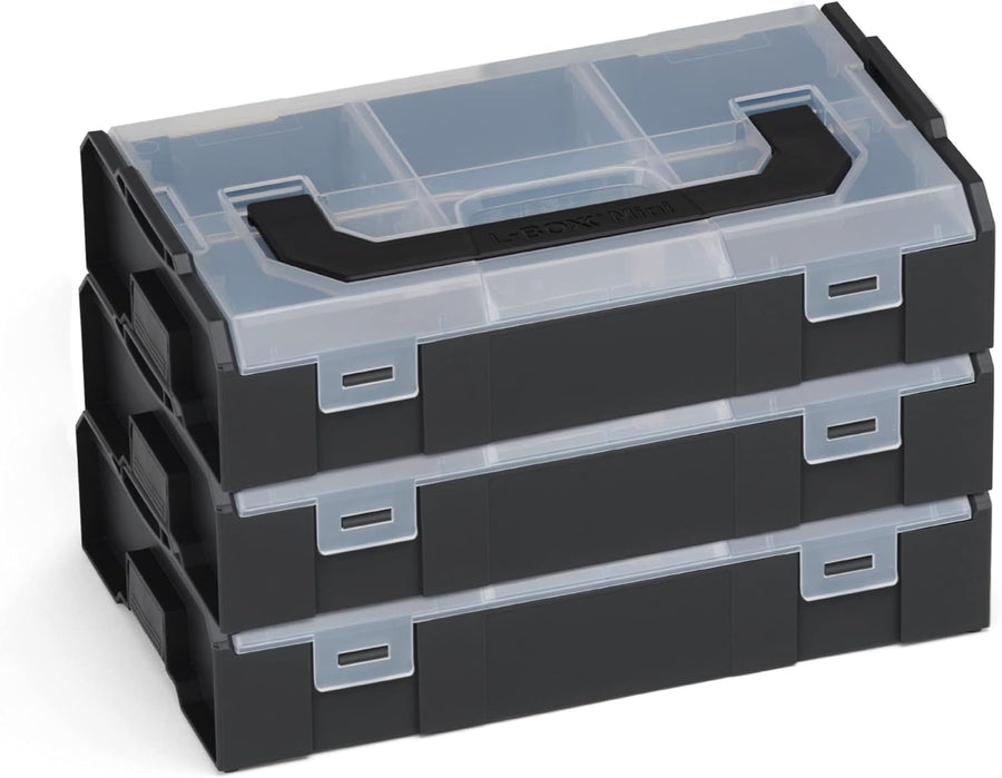 Bosch Sortimo L-BOXX mini Aufbewahrungsbox schwarz Deckel transparent 3 Stück im Set |Mini-Werkzeugk