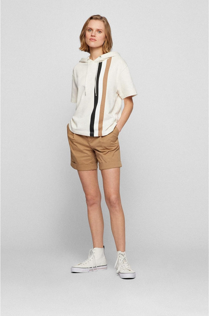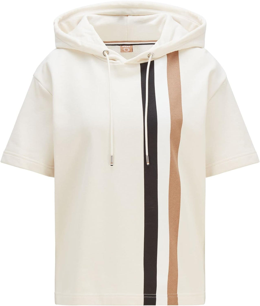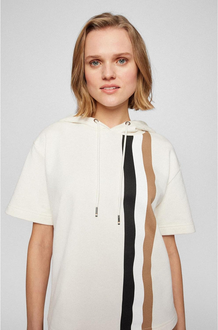 PRODUKTBESCHREIBUNGEN Hoodie mit kurzen Ärmeln und Streifen-Print. Relaxed Fit. Mit Kapuze. Kurze Ärmel. Standardlänge. Modelgrösse: Grösse S, Höhe 177, Taille 60, Brustumfang 84, Hüfte 89