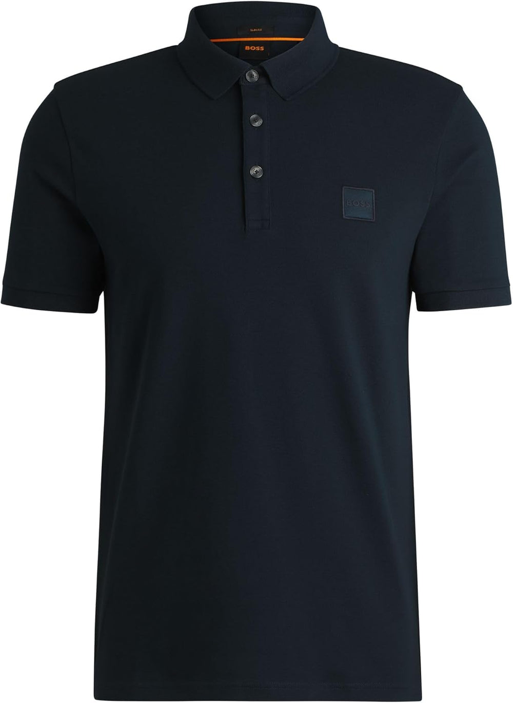 BOSS Herren Passenger Slim-Fit Poloshirt aus Stretch-Baumwolle mit Logo-Aufnäher Dunkelblau L