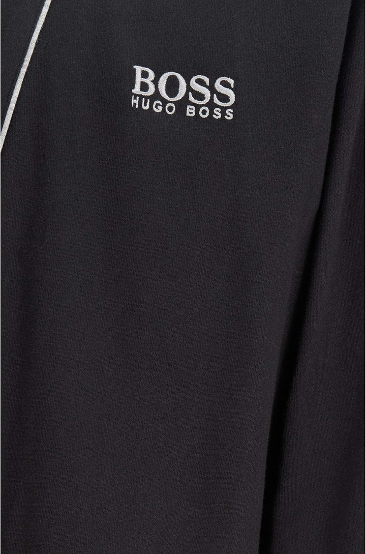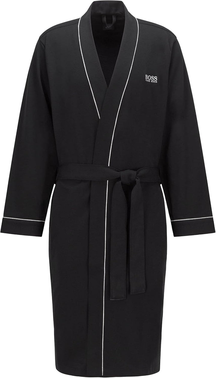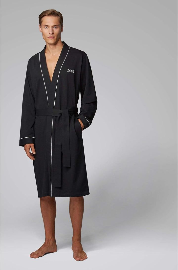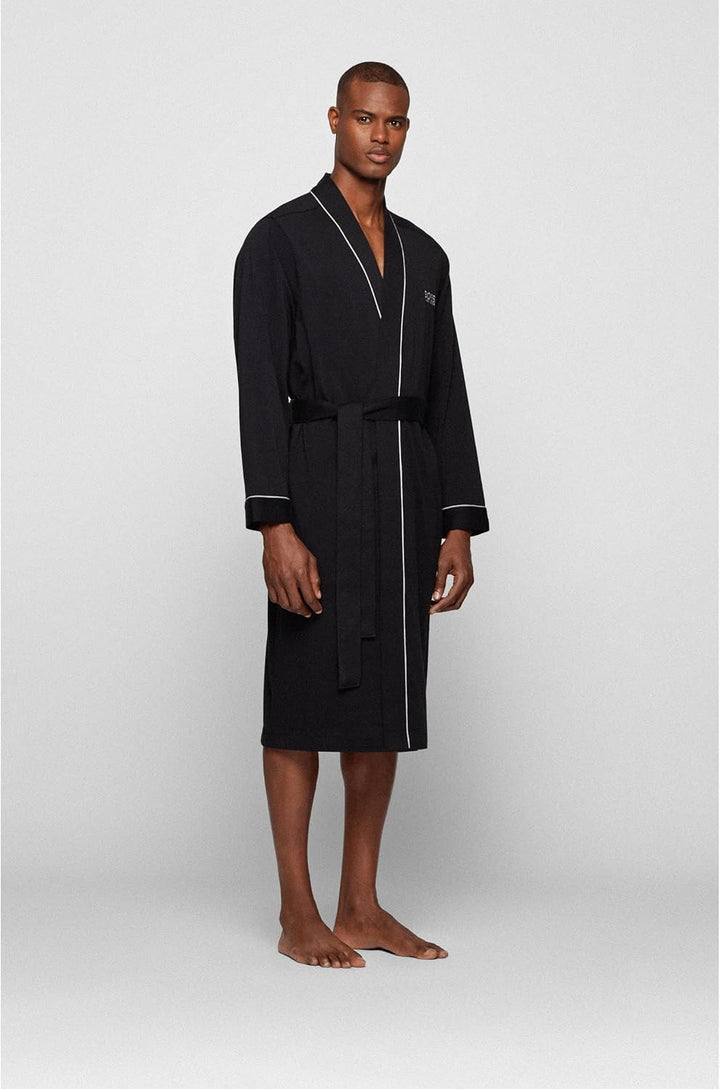 - Der Herren Morgenmantel aus reinem Baumwoll Jersey ist mit kontrastfarbenen Paspeln und einer Boss Logo Stickerei
