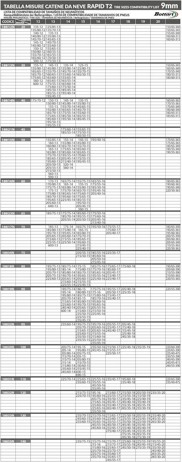 - Rautenförmige Schneeketten. Einfach im Stand zu montieren