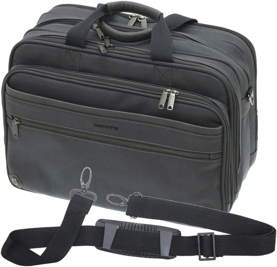 PRODUKTBESCHREIBUNGEN Business Arbeitstasche im Querformat - Material: Nylon. Bordgepäck Handgepäck Kabinen Tasche. Aussenmasse ca. 43 x 30 x 20 cm – Gewicht ca. 1,9 kg – Volumen ca. 29 Liter. Taschen mit vielseitiger Organizer Einteilung – Gepolstertes Laptop-Fach bis ca. 35 x 27 x 6 cm – für DIN A4 Ordner – 2 Grosse Fächer mit Reissverschluss – 3 Frontfächer – 1 Hintere Fach - Tragegriff - Abnehmbare und Verstellbare Schulter Umhängegurt - Fixierbar auf Trolleygriff. Ohne Abgebildeten Inhalt.