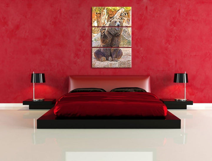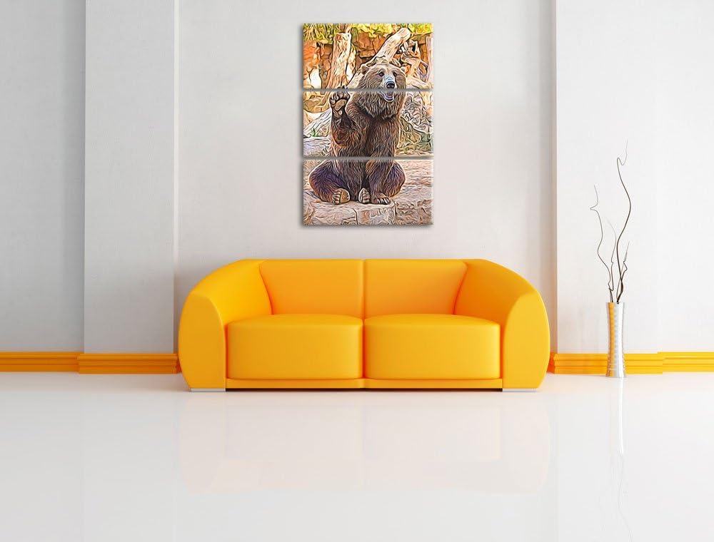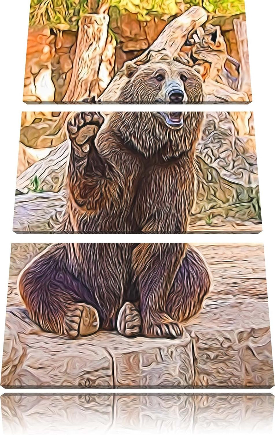 Bär sagt Hallo Spezial 3-Teiler Leinwandbild 120x80 Bild auf Leinwand, XXL riesige Bilder fertig ger
