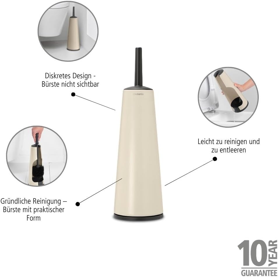 - Gründlich und Diskret - Die Toilettenbürste hat eine intelligent gestaltete Form, während der Bürstenhalter die Bürste diskret verbirgt, wenn sie nicht benutzt wird, und so eine effektive und unauffällige Reinigung gewährleistet