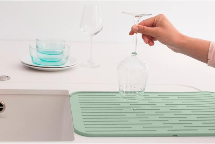 - Effiziente Trockenmatte - Die Abtropfmatte aus Silikon ist weich, rutschfest und sorgt für eine trockene Arbeitsplatte. Das Silikon ist haltbar und platzsparend faltbar