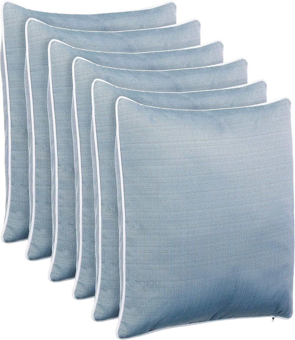 Brandsseller 6er Set Outdoor Kissen 45x45 cm – Wetterfeste Zierkissen mit Paspel in Walzoptik – Wass