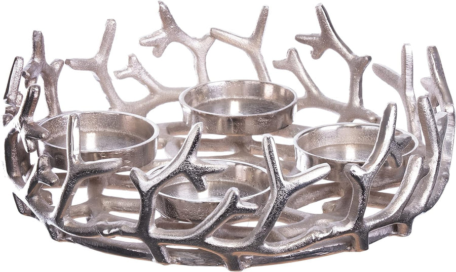 Brandsseller Adventskranz Ø 28 cm | Weihnachtskranz | Aluminium | Silber | Äste Ø 28 cm