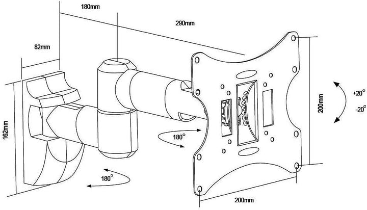 - +/- 20 Grad neigbar; Abstand von der Wand kann auf max. 47 cm eingestellt werden