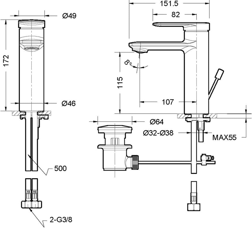 - Ablaufgarnitur 1 1/4" mit Zugstange aus Edelstahl