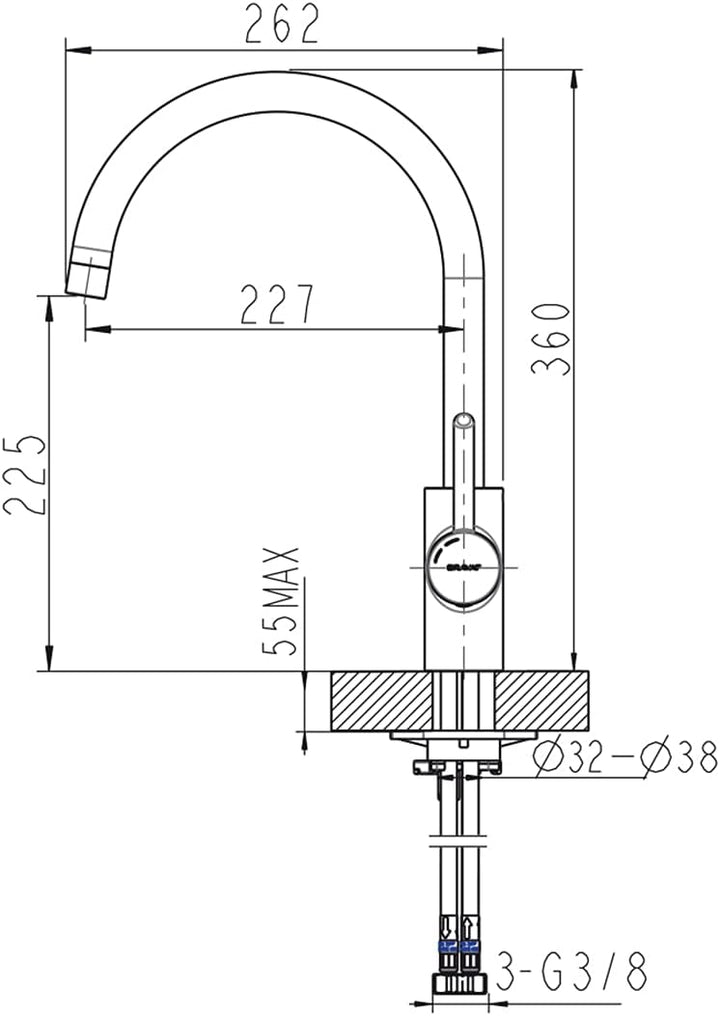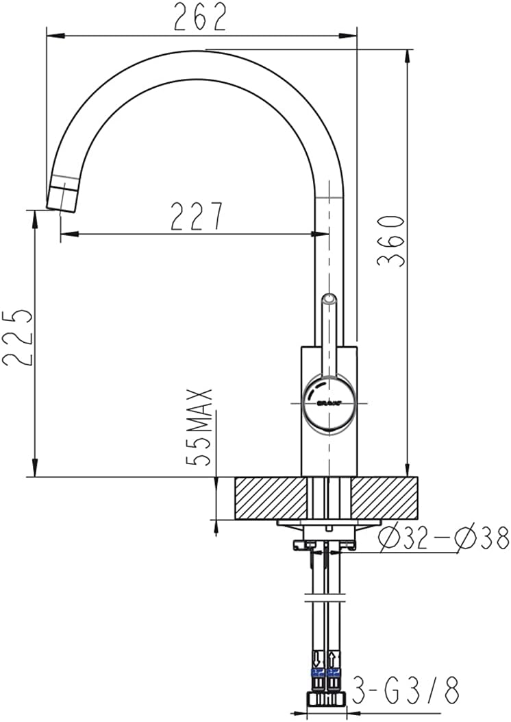 - Schwenkauslauf mit 120° Schwenkbegrenzung