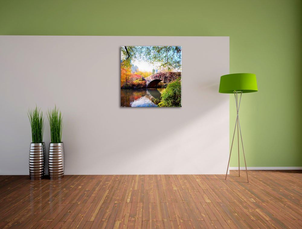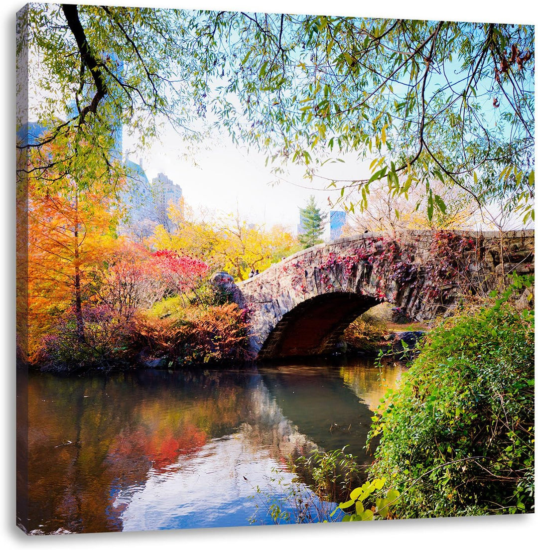 Brücke im Central Park, Format: 70x70 auf Leinwand, XXL riesige Bilder fertig gerahmt mit Keilrahmen