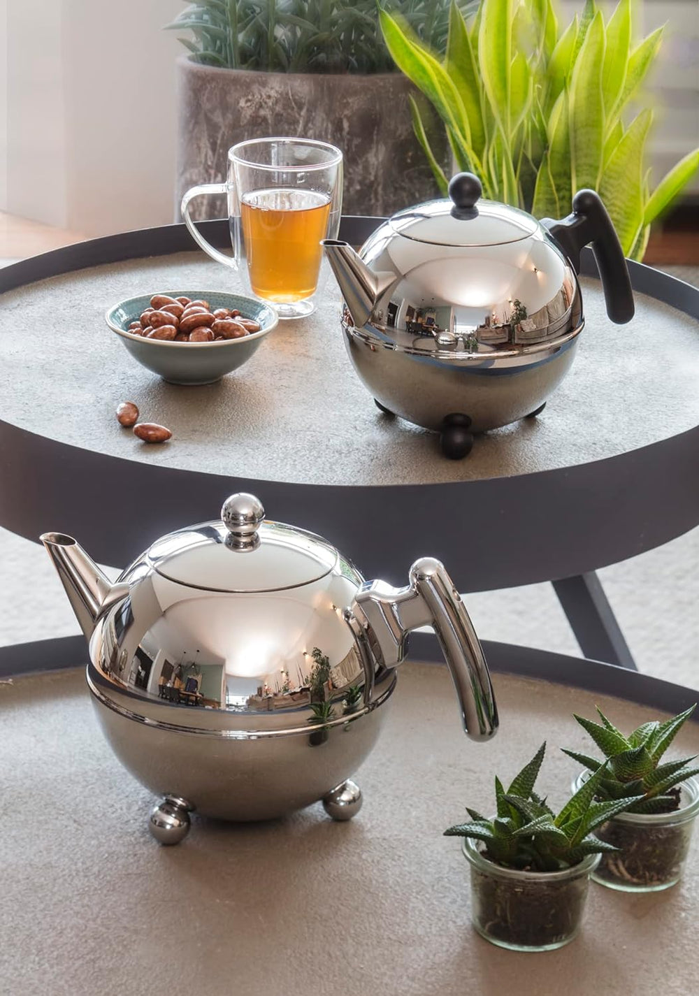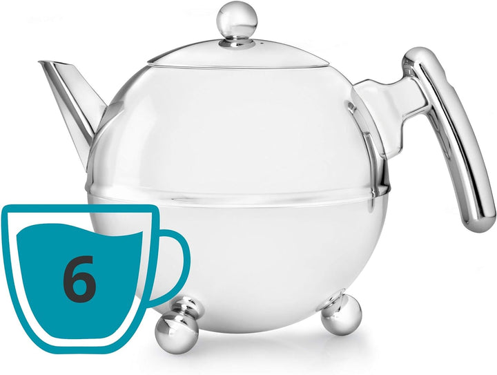 - Die grosse runde silberne 1.2 L Teekanne aus Edelstahl ist doppelwandig und isoliert Tee optimal