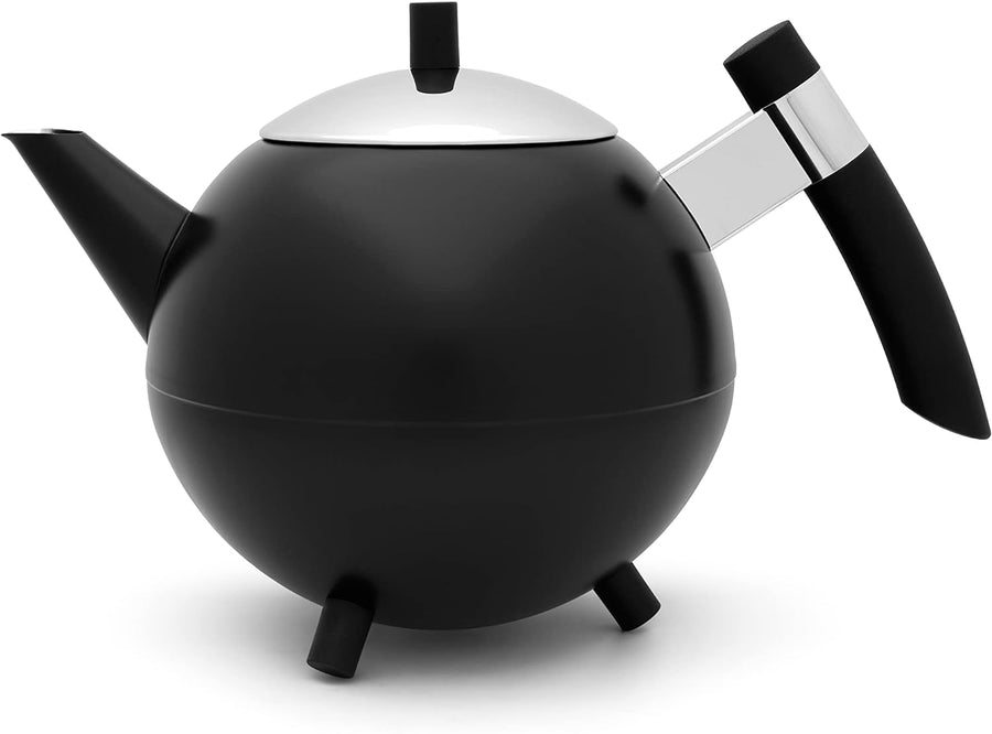 - Die grosse runde schwarze 1.2 L Teekanne aus Edelstahl ist doppelwandig und isoliert Tee optimal