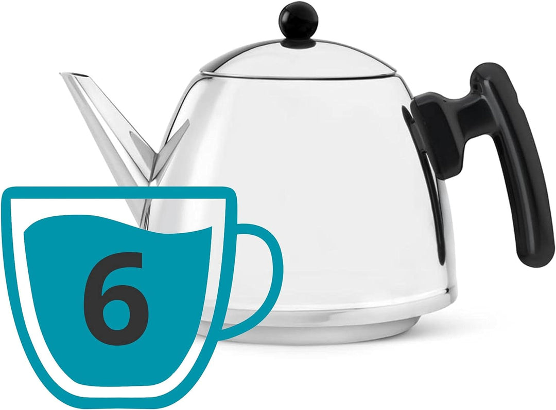 Bredemeijer kleine doppelwandige Edelstahl Teekanne 1.2 Liter mit schwarzem Griff
