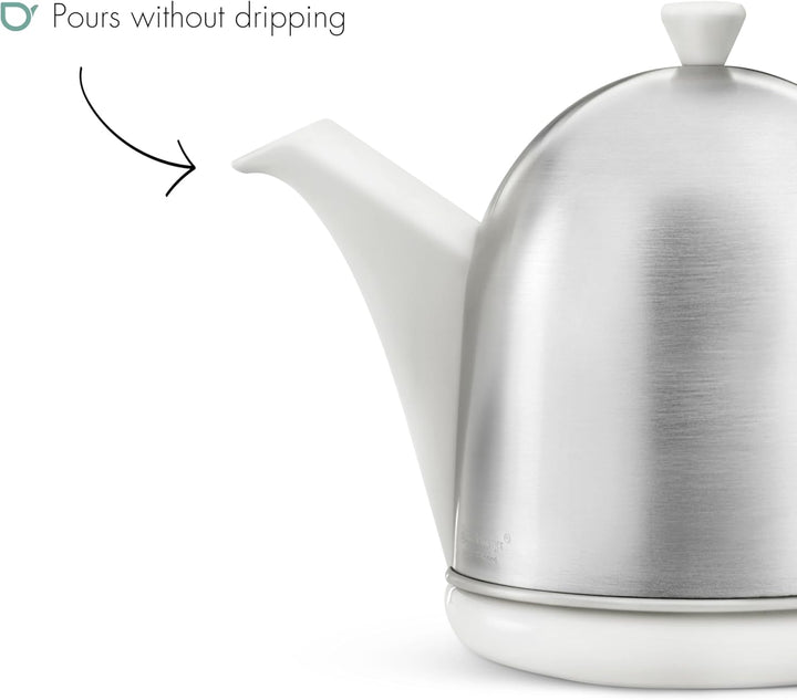- Die besonders geformte Tülle der Keramik-Teekanne mit Sieb gestattet ein tropffreies Einschenken