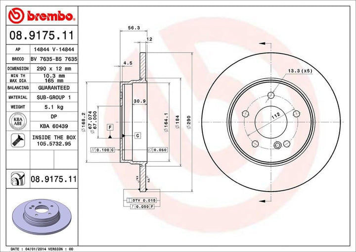 - Aussendurchmesser (mm) 290; Nenndicke (mm) 12; Mindestdicke (mm) 10,3