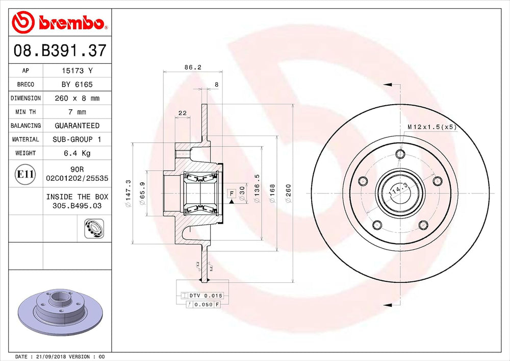 - TECHNISCHE INFO: BREMSSCHEIBE Hinten Aussen Ø [mm]: 260