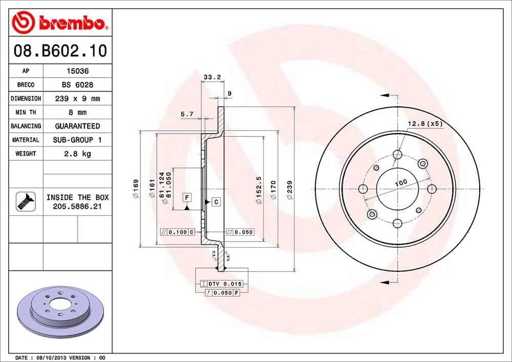 Brembo 08.B602.10 Hintere Bremsscheibe, Anzahl 2