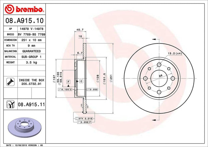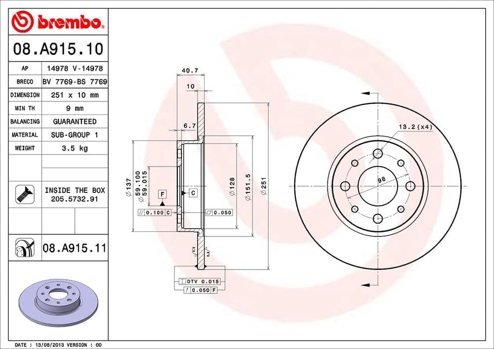 - Aussendurchmesser (mm) 251; Nenndicke (mm): 10; minimale Tiefe (mm): 9