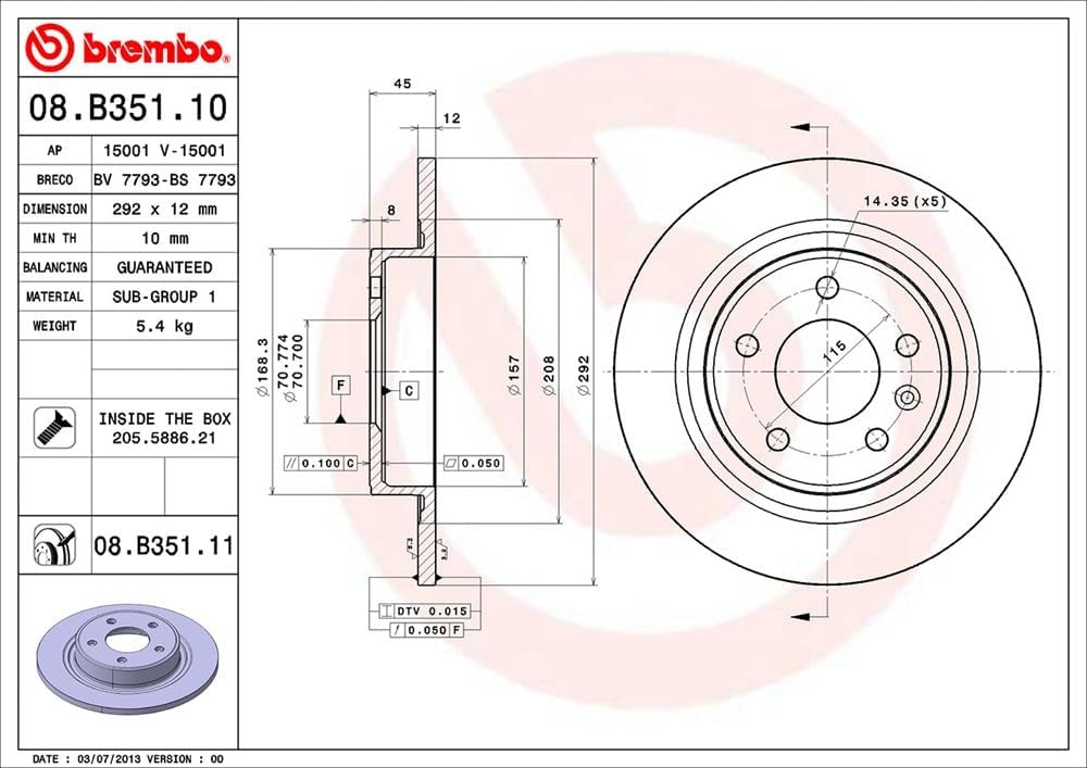 - Aussendurchmesser (mm) 292; Nenndicke (mm) 12; Mindestdicke (mm) 10