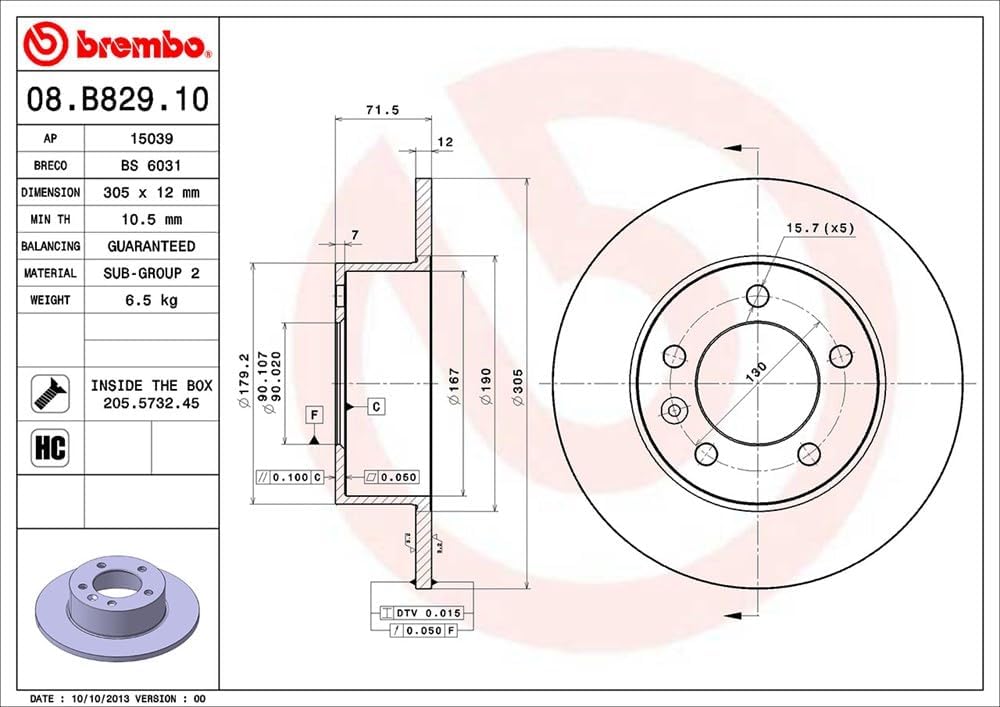 - Aussendurchmesser (mm) 305; Nenndicke (mm) 12; Mindestdicke (mm) 10,5