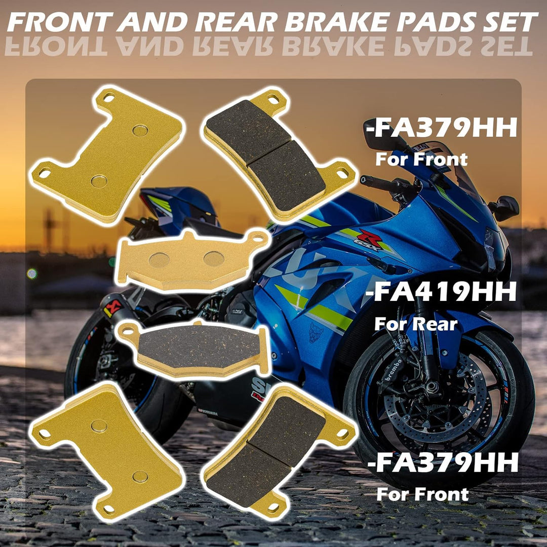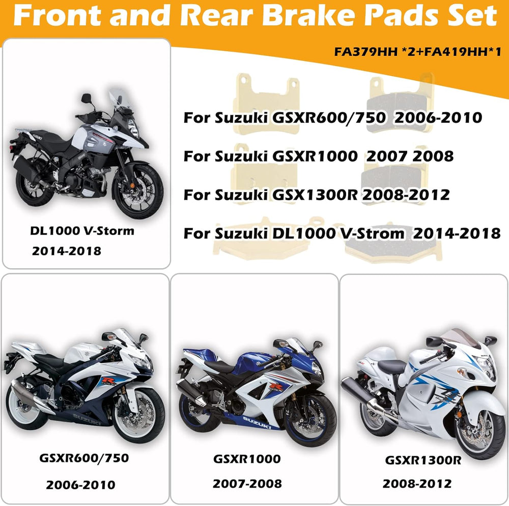 - 【Anwendung】 Bremsbelagsatz vorne und hinten funktioniert für 2006-2010 Suzuki GSXR600/750, für 2007 2008 Suzuki GSXR1000, für Suzuki GSX1300R 2008-2012 und 2014-2018 DL1000 V-Strom, 2 Paar FA379HH und 1 Paar FA419HH Bremse Pads.