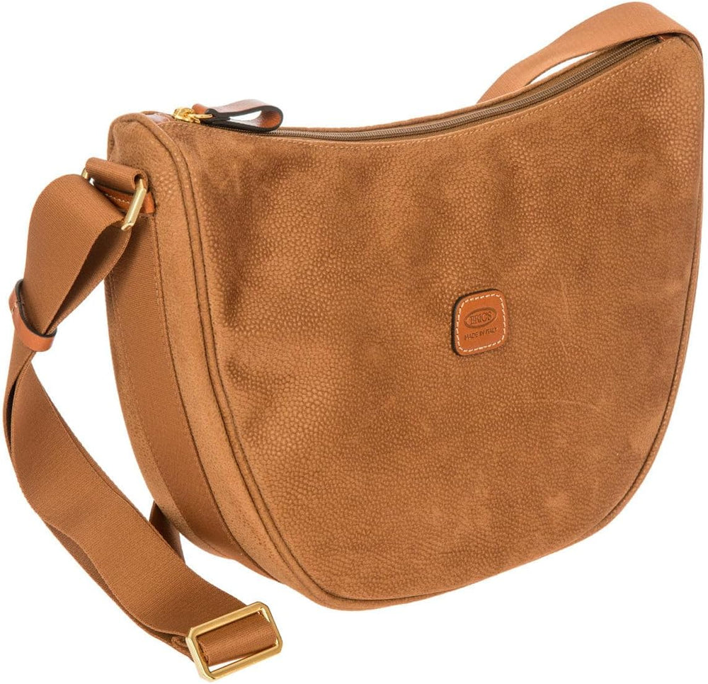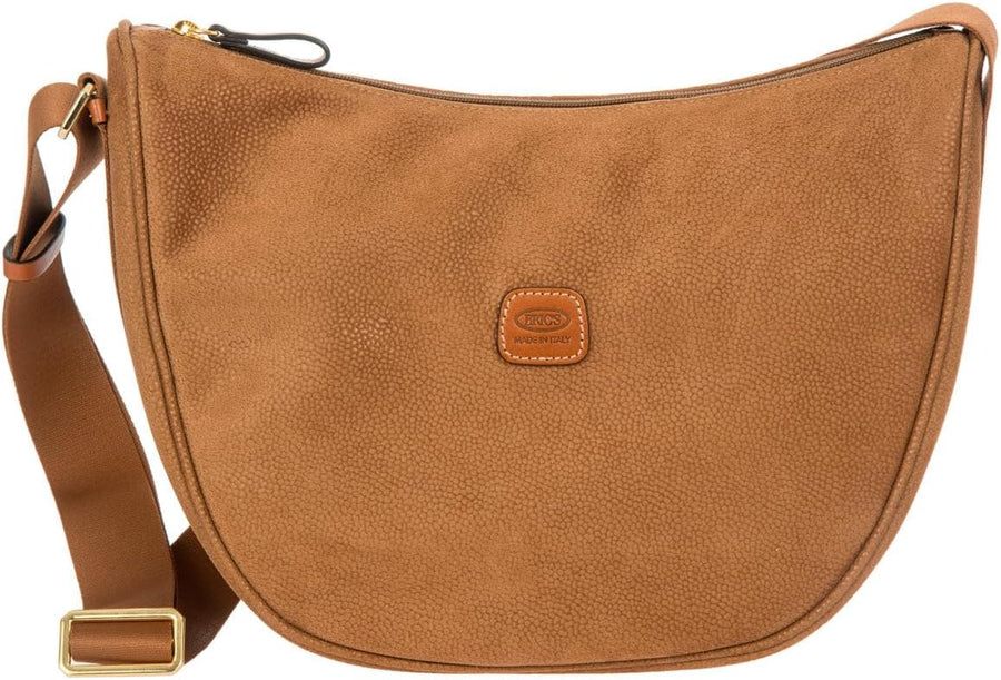 PRODUKTBESCHREIBUNGEN BRIC'S Umhängetasche lässt Sie im Alltag strahlen Daten Umhängetasche: o Masse: Breite ca. 33 cm, Höhe ca. 23 cm, Tiefe ca. 10 cm o Gewicht: ca. 610 g o Farbe: Camel (hellbraun) o 1 Schulterriemen stufenlos verstellbar: ca. 63 cm - 126 cm o Material: Aussen 95% Polyvinylchlorid, 5% Leder, innen 100% Polyester o Lieferumfang: BRIC'S Umhängetasche mit Etikett, 1 x Staubbeutel Ausstattung Umhängetasche: o Umhängetasche wird mit Zipper geschlossen o Im Hauptfach 2 Einschubfächer und 1 Zipperfach o Auf der Rückseite 1 Zipperfach o Mit verstärkten Kanten ausgestattet o Ist standfest o Das BRIC'S Logo ist gut sichtbar eingearbeitet BRIC'S Life Half-Moon Bag Luna - Diese schicke Umhängetasche bekommen Sie nicht mehr so schnell aus Ihrem Kopf Für jeden Anlass geeignet ist die BRIC'S Life Half-Moon Bag Luna. Ob als lässige Nuance beim schicken Kleid oder als stilvolles Accessoire zur Jeans, die Tasche begeistert mit einer hohen Kompatibilität zu unterschiedlichen Looks. Die hochwertige Verarbeitung und die trendige Form machen die BRIC'S Tasche zu einer modischen Meisterleistung und bietet Platz für alles Wichtige.