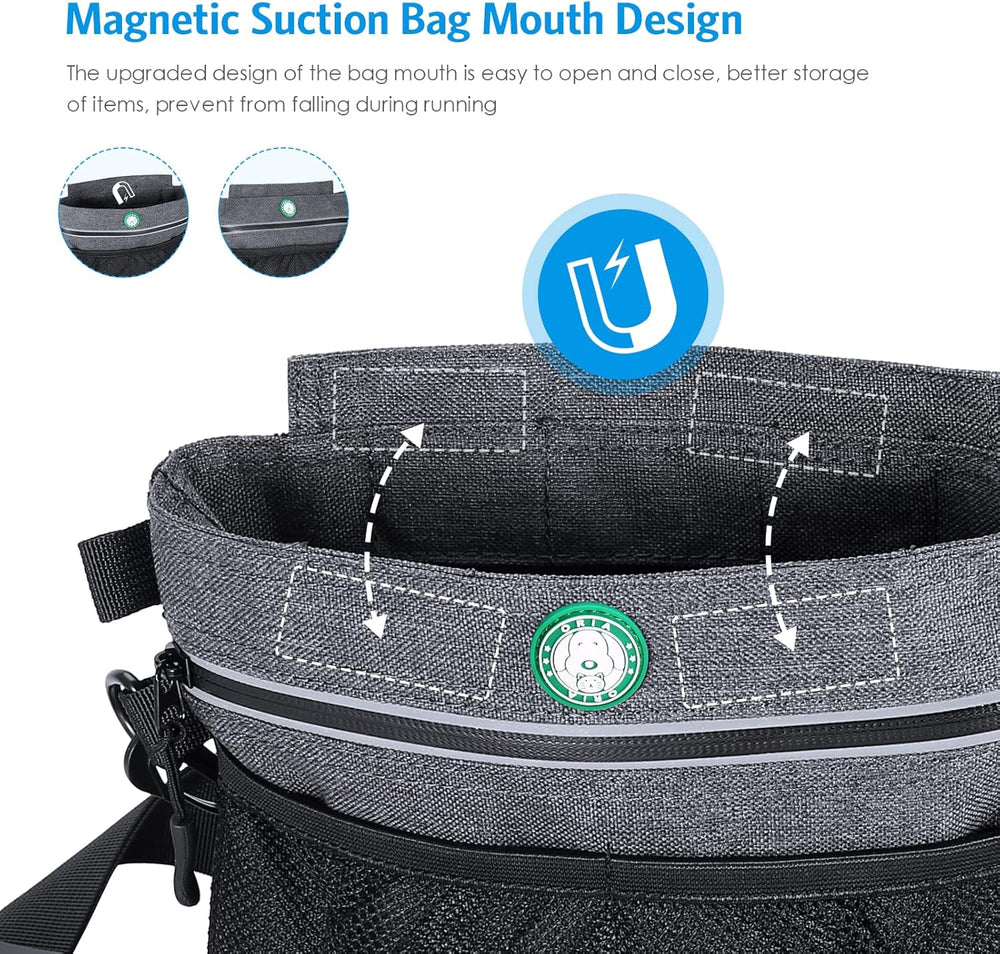 - 【Innovative magnetische Öffnung】Die Haupttasche verwendet eine innovative magnetische Öffnung, um die Tasche leicht zu öffnen und zu schliessen, was es sehr einfach macht, Hundefutter oder Gegenstände hineinzulegen und herauszunehmen. Die sauber