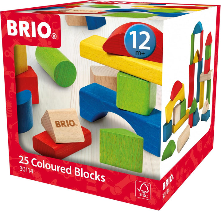 - Dieses Set beinhaltet 25 bunte Holzbausteine in 7 verschiedenen Formen.