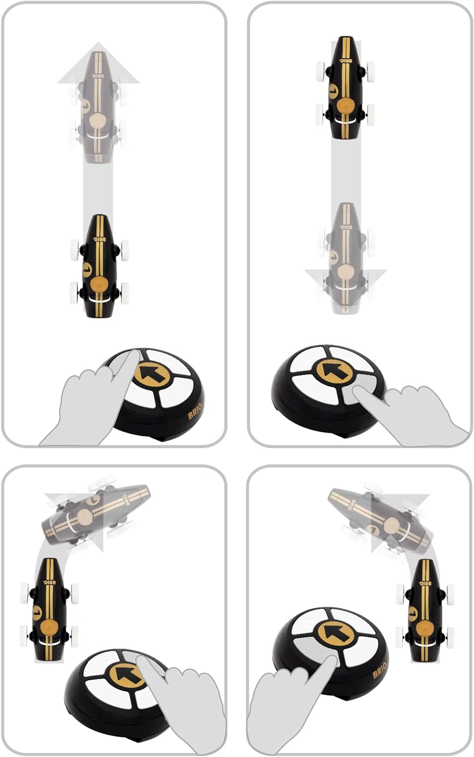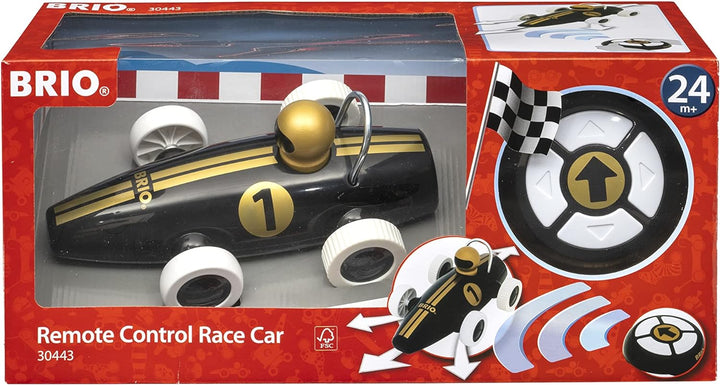 - Brumm, brumm! Mit seinem coolen schwarzen Fahrwerk und seinem windschnittigen Aussehen bietet der BRIO Rennwagen mit Fernsteuerung den Kindern viele Stunden rasanten Rennfahrspass