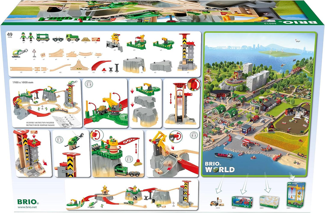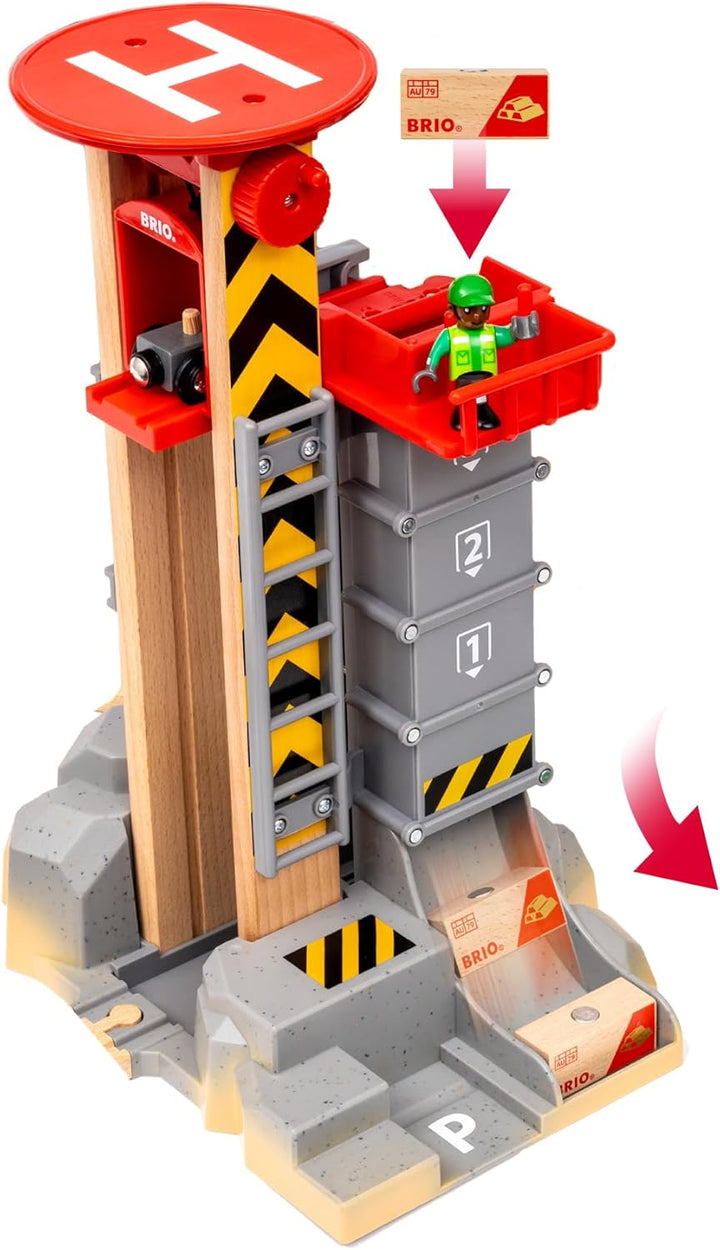 - BRIO Eisenbahn-Action auf fünf Ebenen! Der Aufzug bringt die beladenen Waggons auf den höchsten Punkt des Bergmassivs