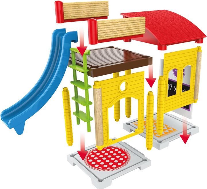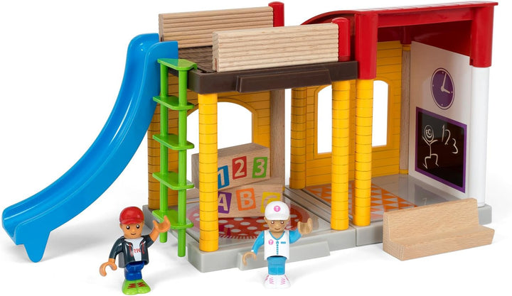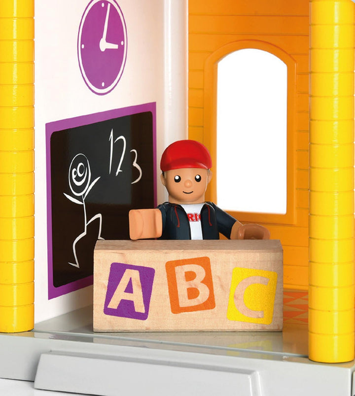 - Die Schule besteht aus anpassbaren Modulen. Regt das Kind zu realistischen Rollenspielen an. Enthält ausserdem zwei Figuren und Einrichtungsdetails.
