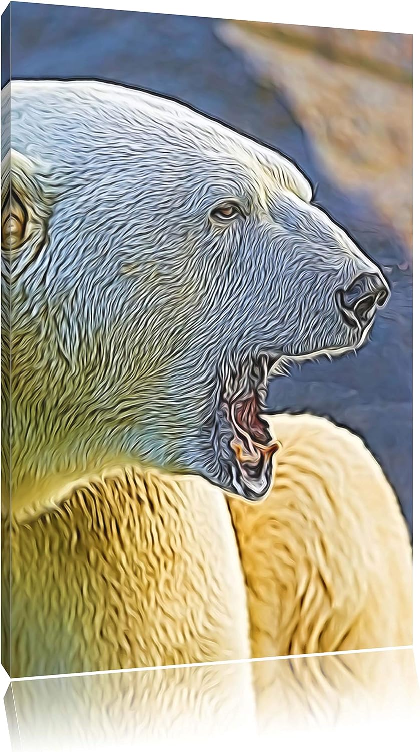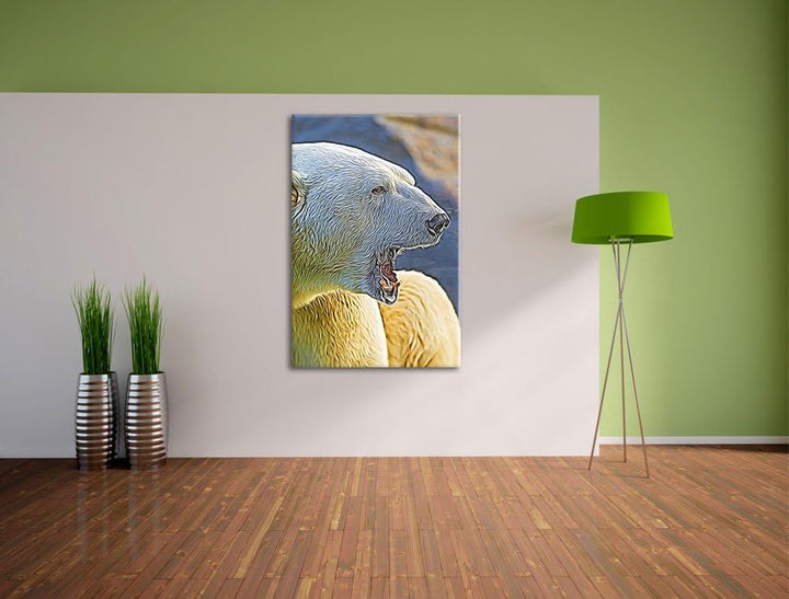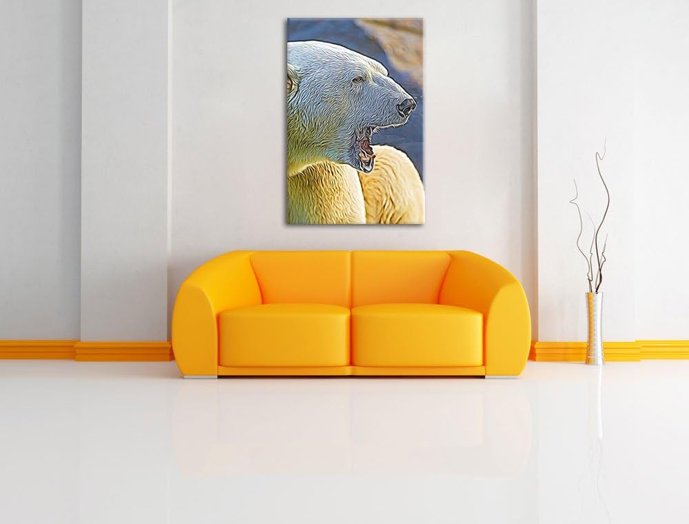 brüllender Eisbär Deluxe Format: 100x70 cm auf Leinwand, XXL riesige Bilder fertig gerahmt mit Keilr
