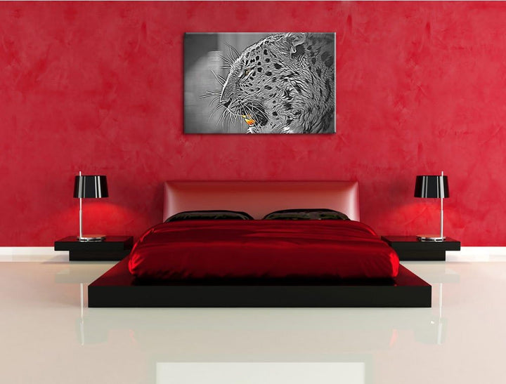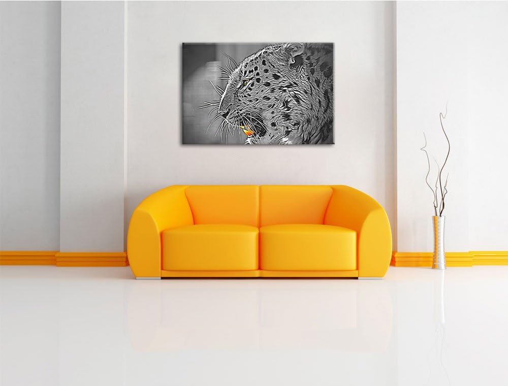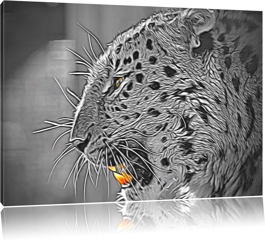 brüllender Leopard schwarz/weiss Deluxe Format: 100x70 cm auf Leinwand, XXL riesige Bilder fertig ge