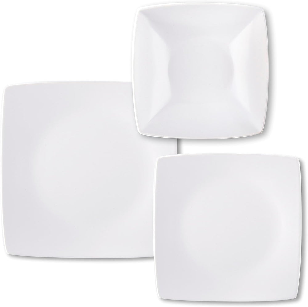 - 18-teiliges Tellerservice, zum Servieren von bis zu 6 Personen: Das Excelsa Eclipse Tellerservice besteht aus 18 Teilen und eignet sich für einen modernen und minimalistischen Tisch, der nie aus der Mode kommt. Die quadratischen Formen zeichnen sich