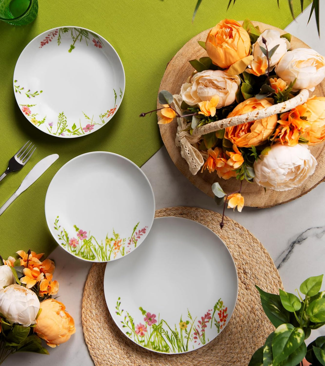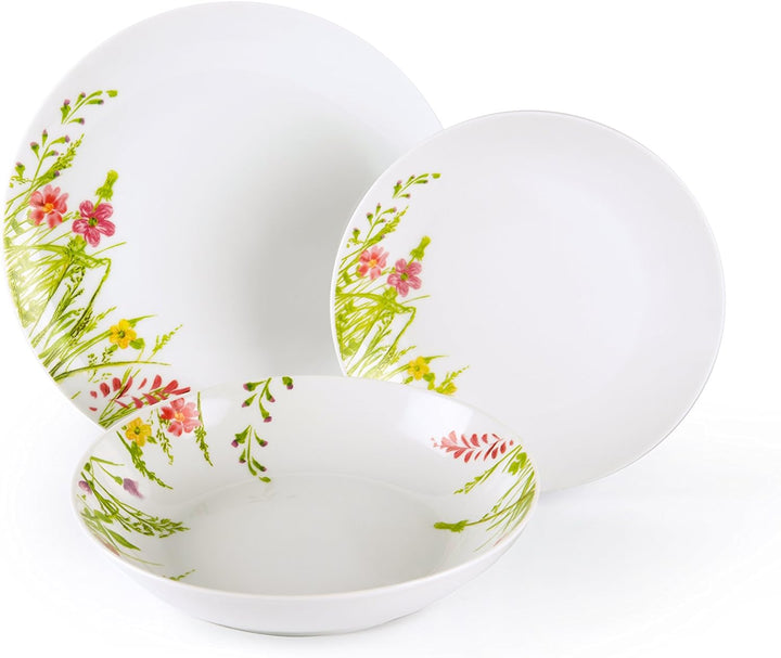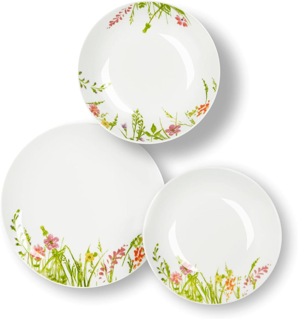 - 6 flache Teller Ø 24 cm; 6 tiefe Teller Ø 20,5 cm; 6 Dessertteller Ø 19 cm